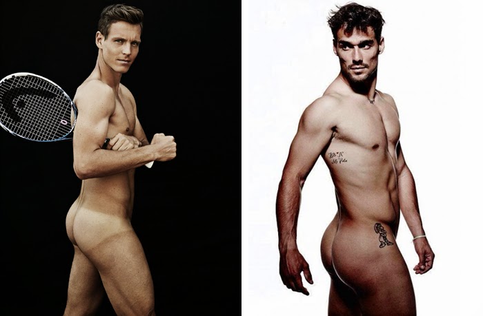 On the left is Tomas Berdych posing for ESPN's Body Issue. Grand Slam champion Venus Williams is also featured in the issue. On the right is the usually naked Fabio Fognini who got in the buff this time around for British Cosmopolitan to raise awareness of cancer for Cancer Research UK.